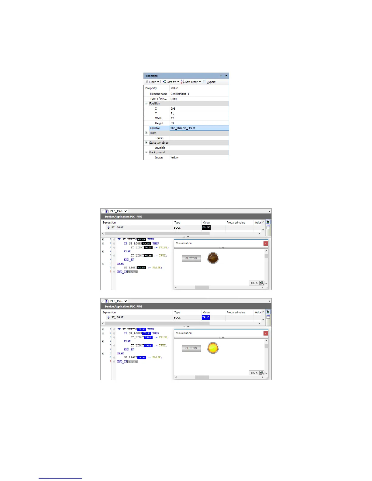 Whenever the variable is switched between FALSE and TRUE, the created Lamp turns