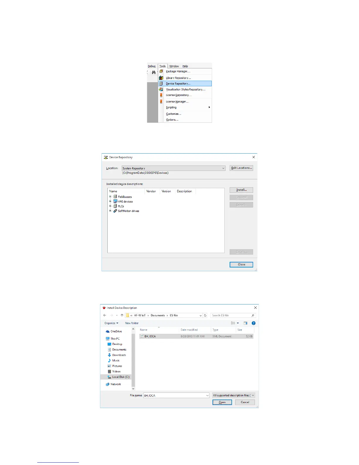 2. The Device Repository window is displayed. Install the configuration file for the