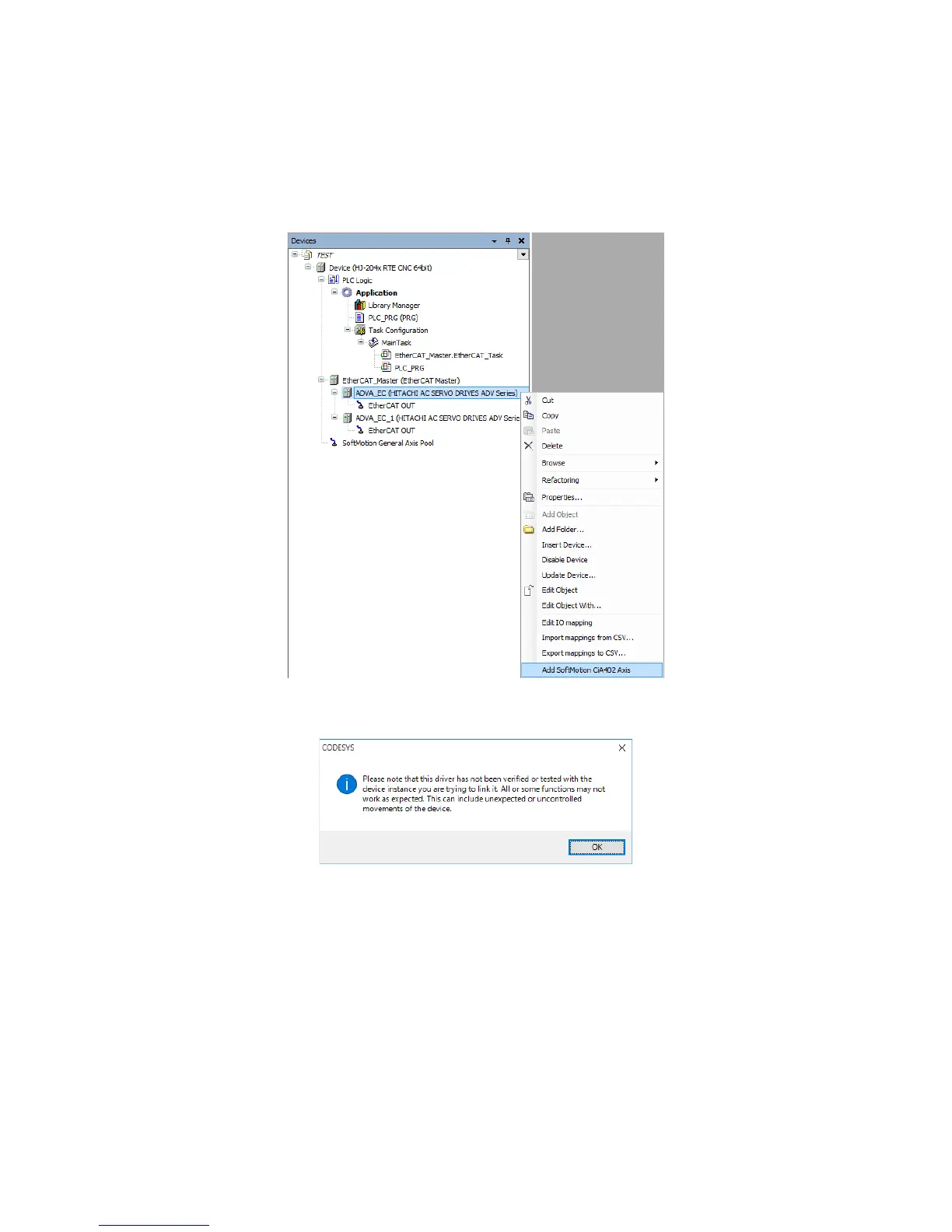 menu, click Add SoftMotion CiA402 Axis.