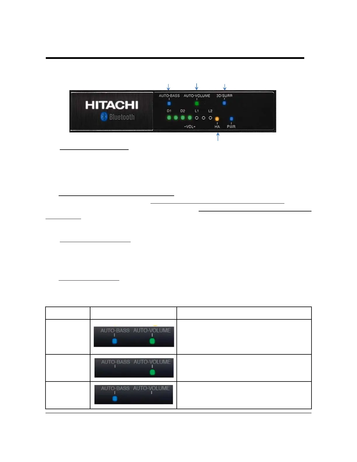 NITEMode FrontPanel Indicators AUTO‐BASS/AUTO‐VOLUME Description