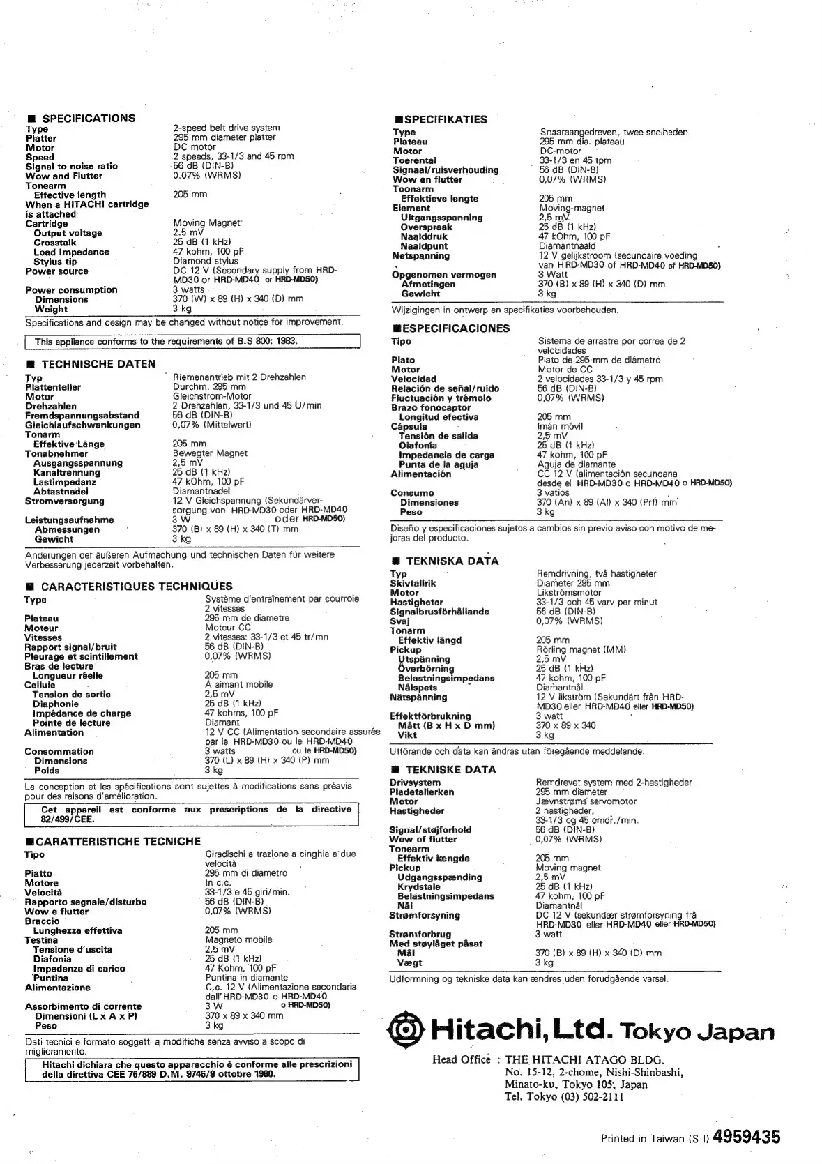 Hitachi HT-MD30 - Caracteristiques Techniques; Tekniska Data