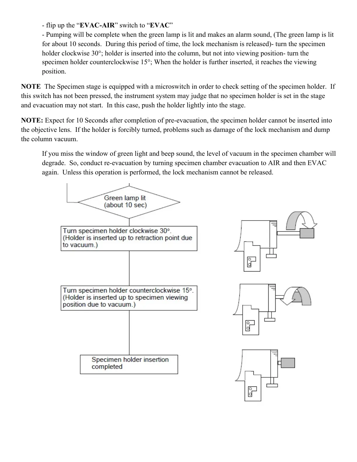 NOTE: Expect for 10 Seconds after completion of pre-evacuation, the specimen holder cannot be inserted into