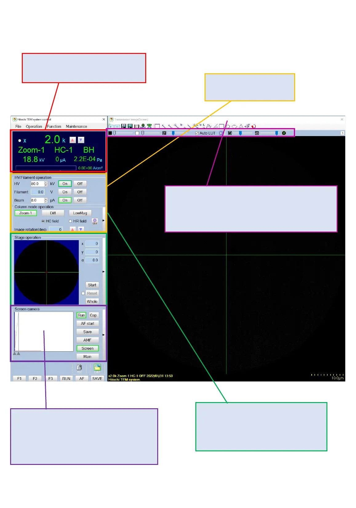 Information about magnification, kV,