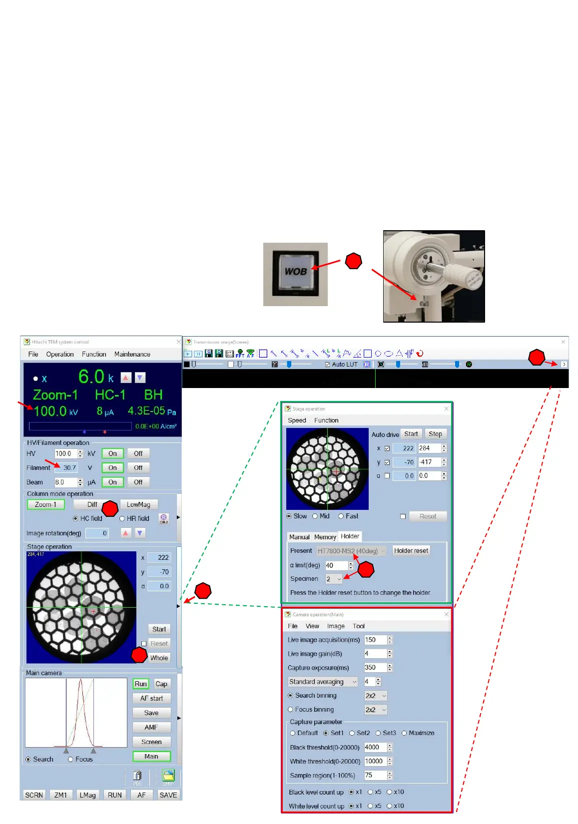 Insert your sample holder and perform a beam shift horizontal alignment (page 17).