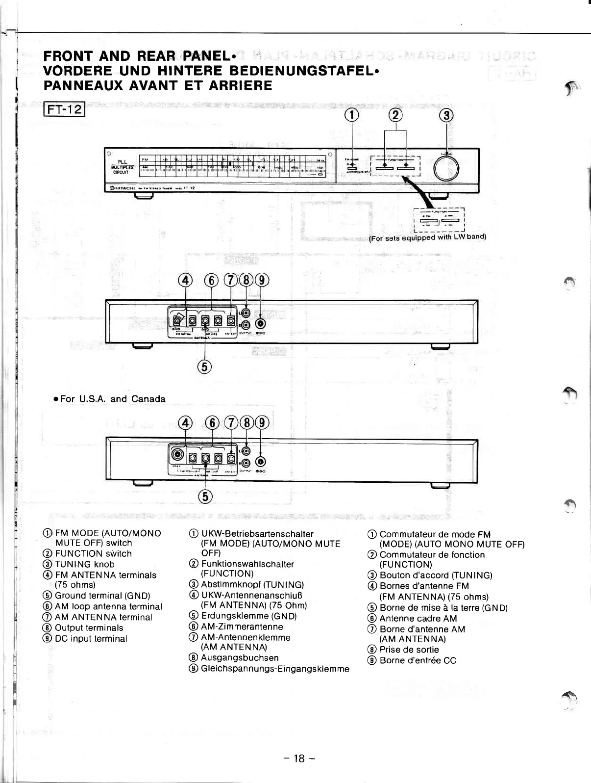 Hitachi HTA-12 - Front and Rear Panel Overview