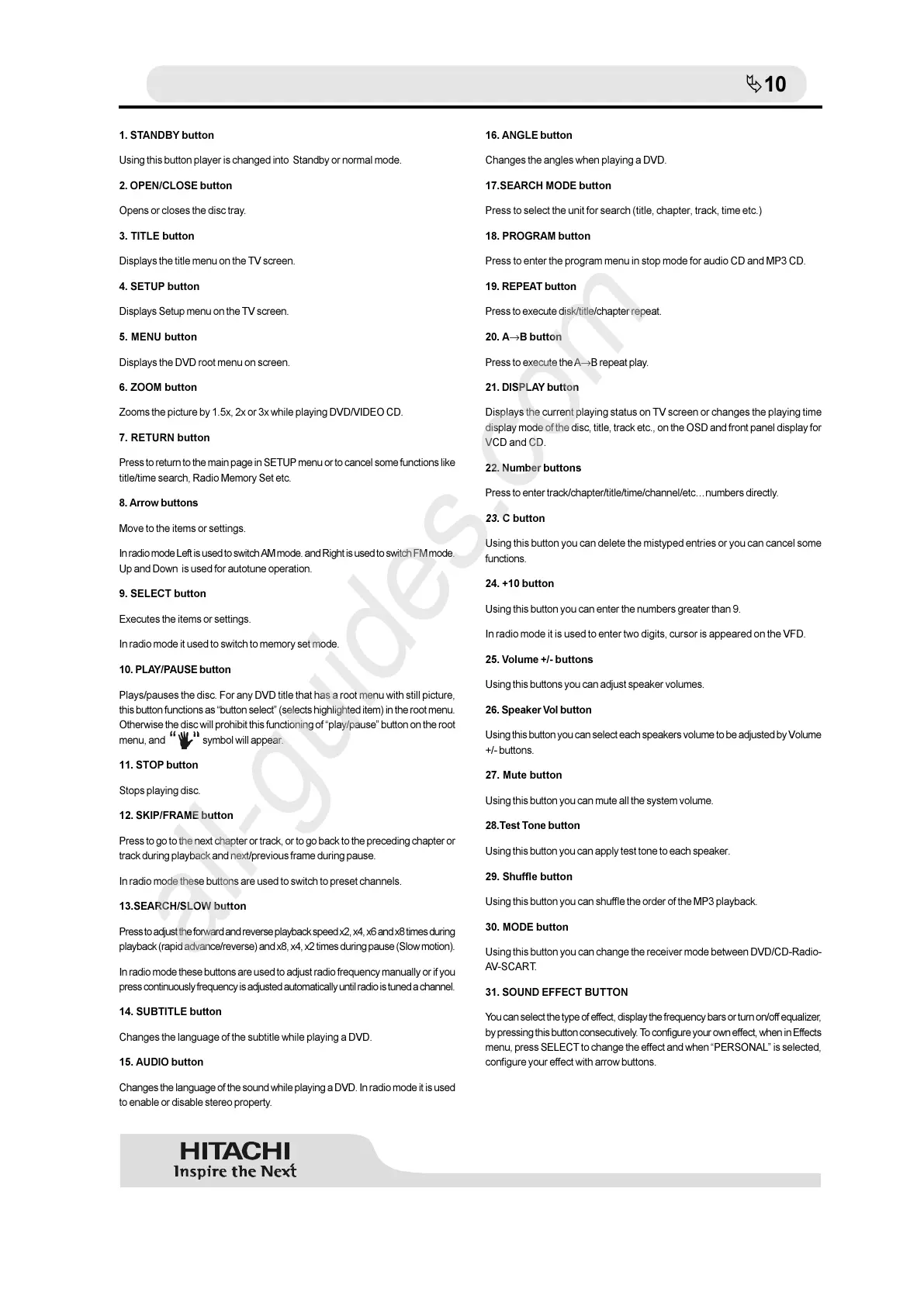 Using this button you can change the receiver mode between DVD/CD-Radio-