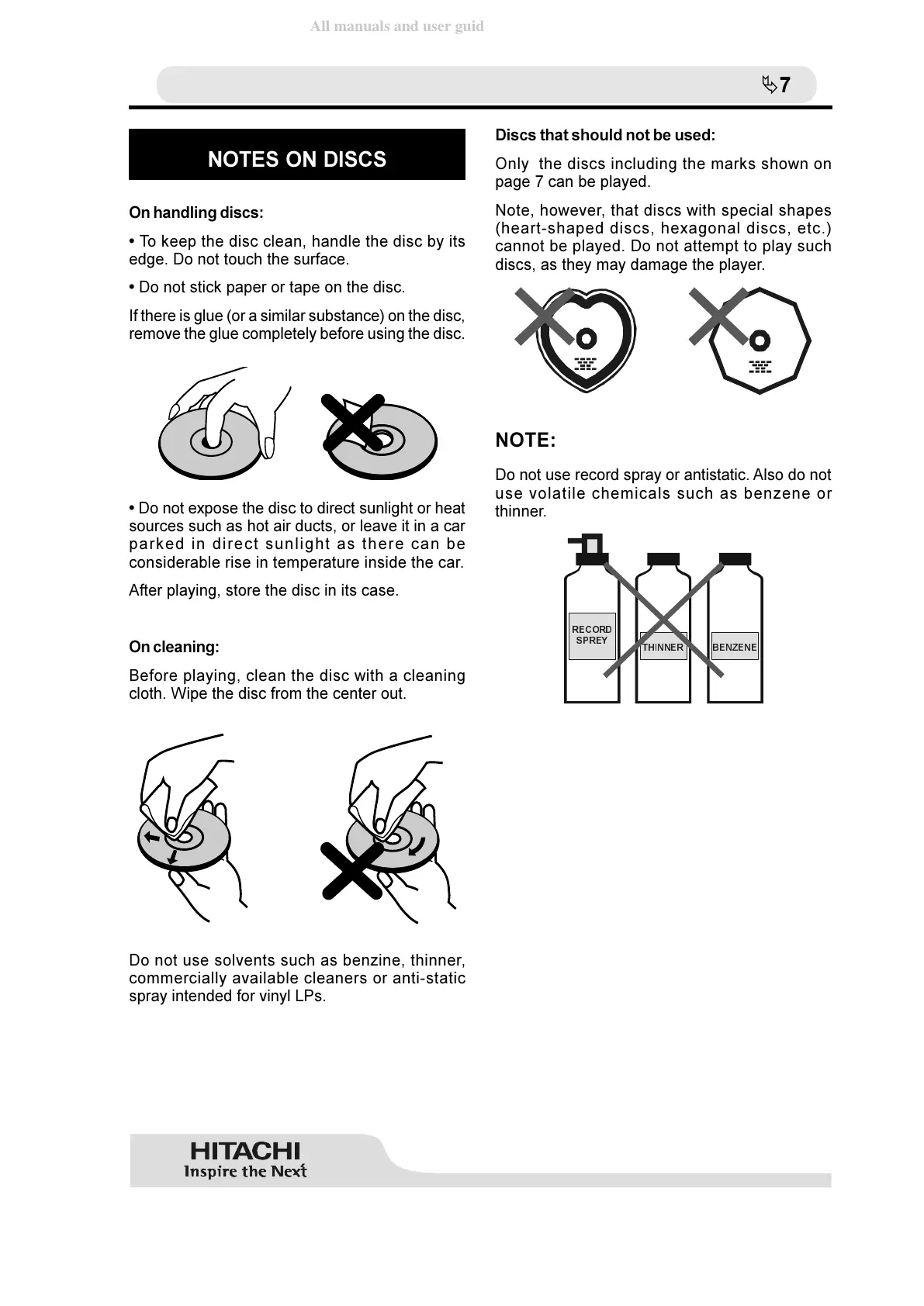 discs, as they may damage the player.