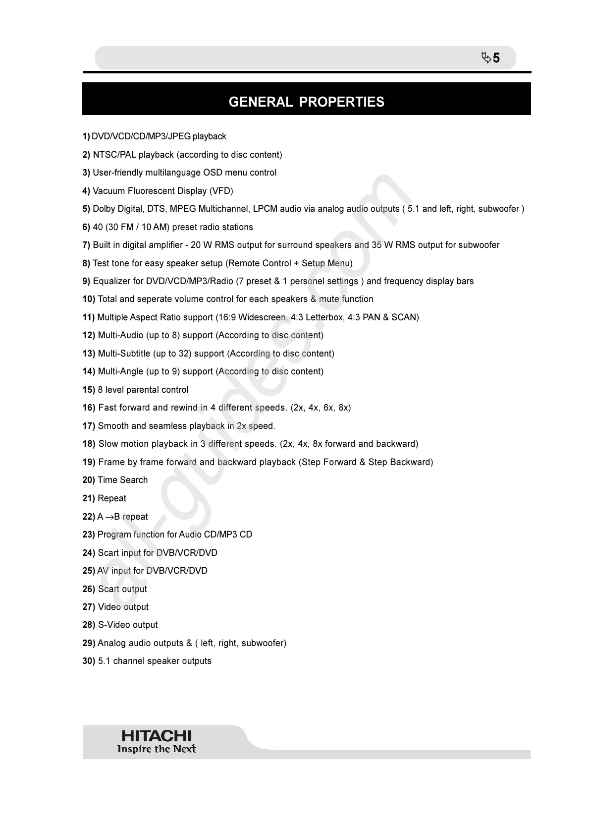 7) Built in digital amplifier - 20 W RMS output for surround speakers and 35 W RMS output for subwoofer