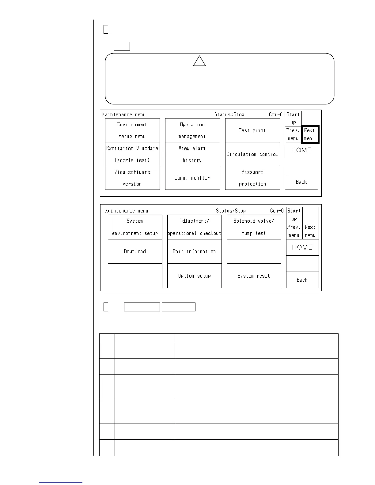4 The Prev. menu Next menu switching key is displayed and thereby the