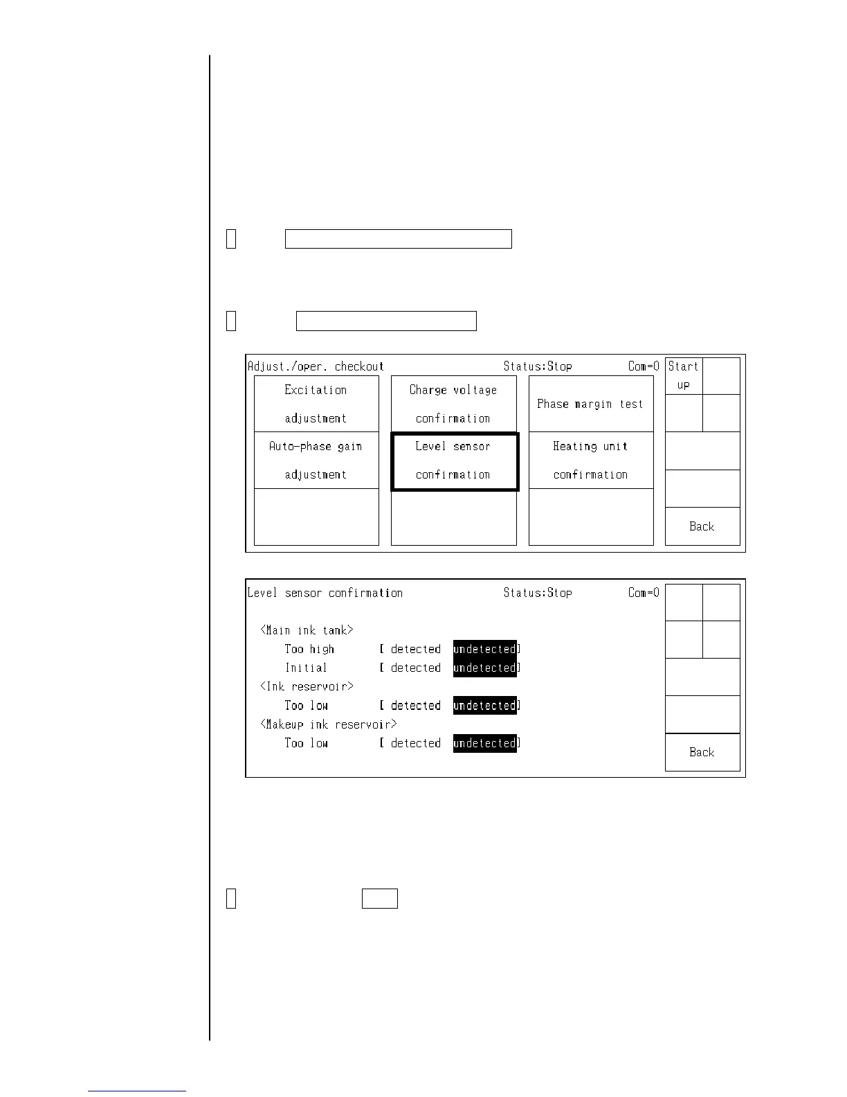 - The operation confirmation of level sensor in the makeup ink reservoir is performed.