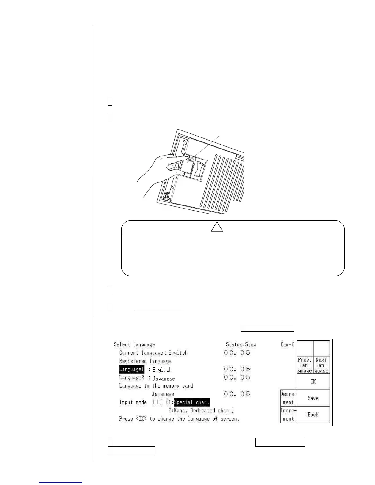 In case that the languages in the memory card are not displayed on the screen, put it into
