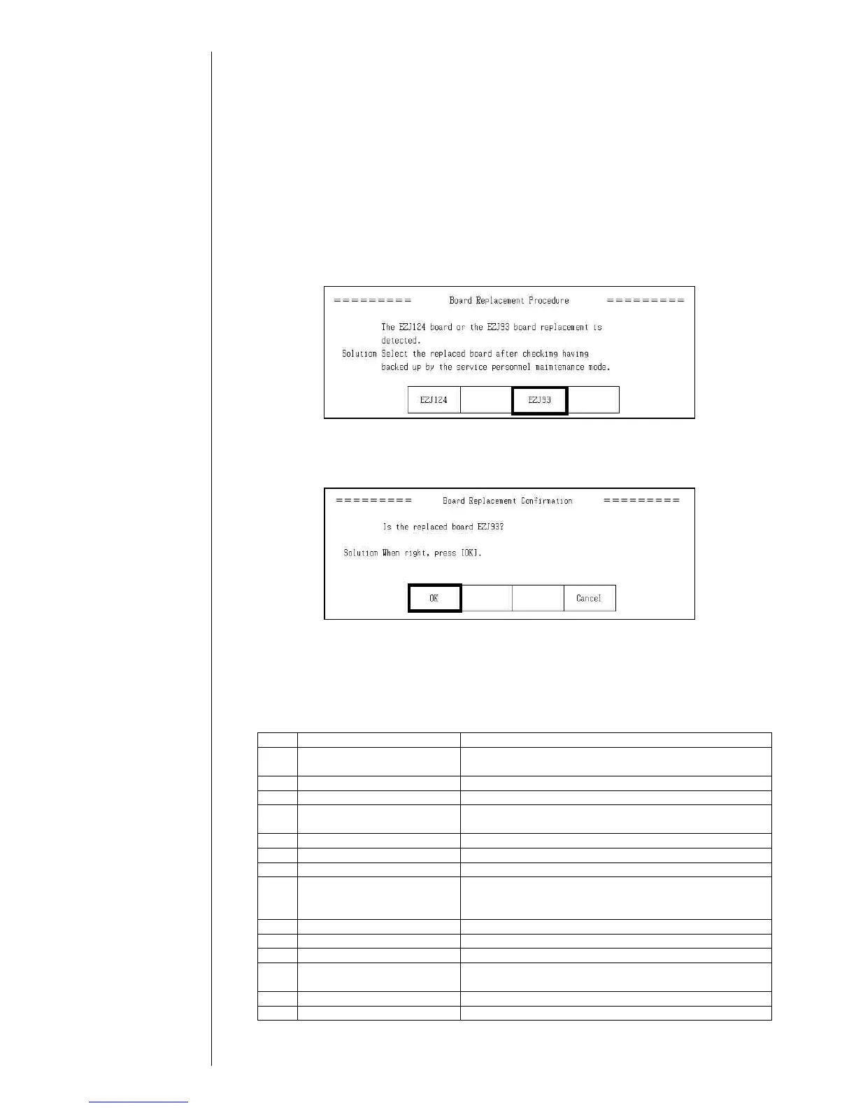 on the EZJ124 board, following message screen “Board Replacement Procedure” is