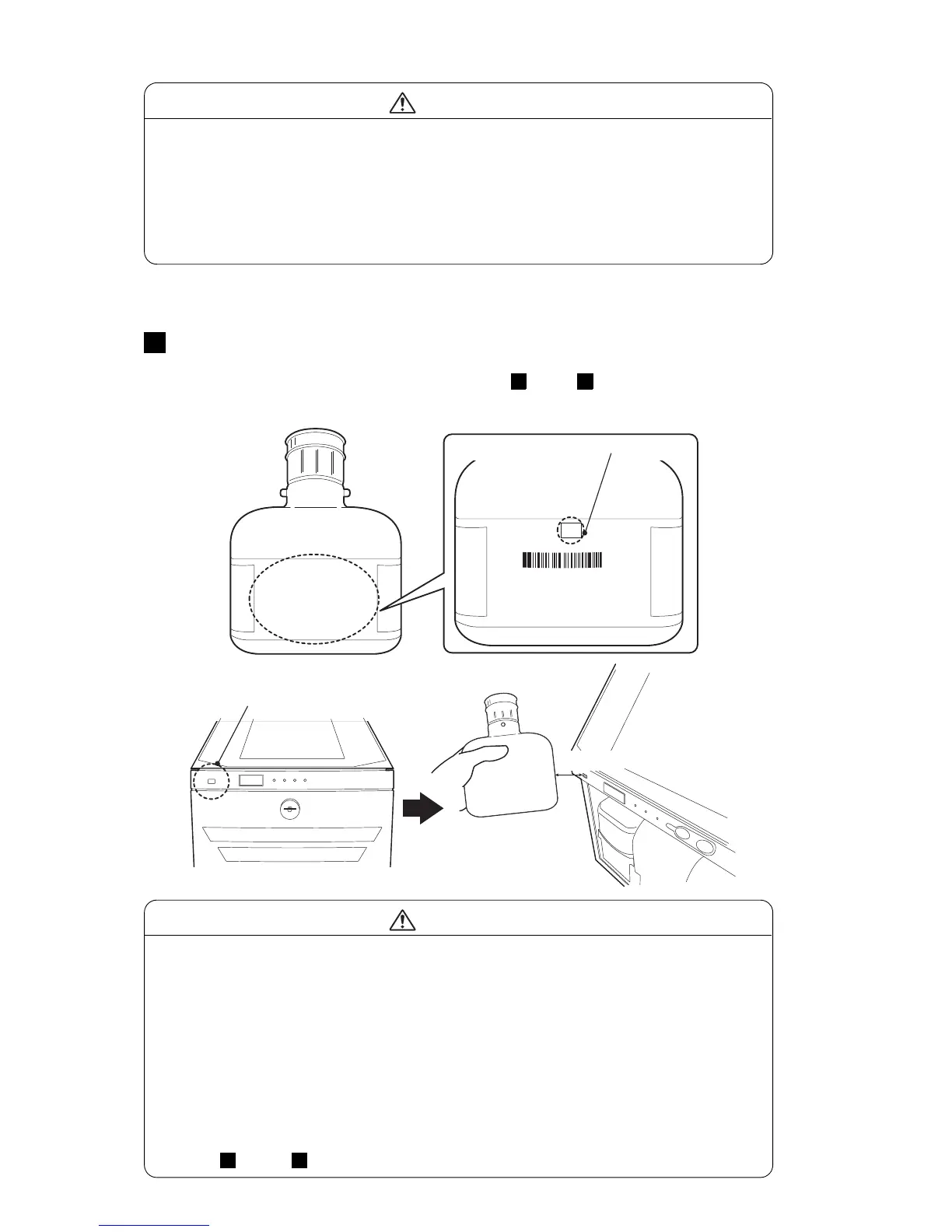 Hold the cartridge bottle over the RFID reader of the printer so that the IC tag