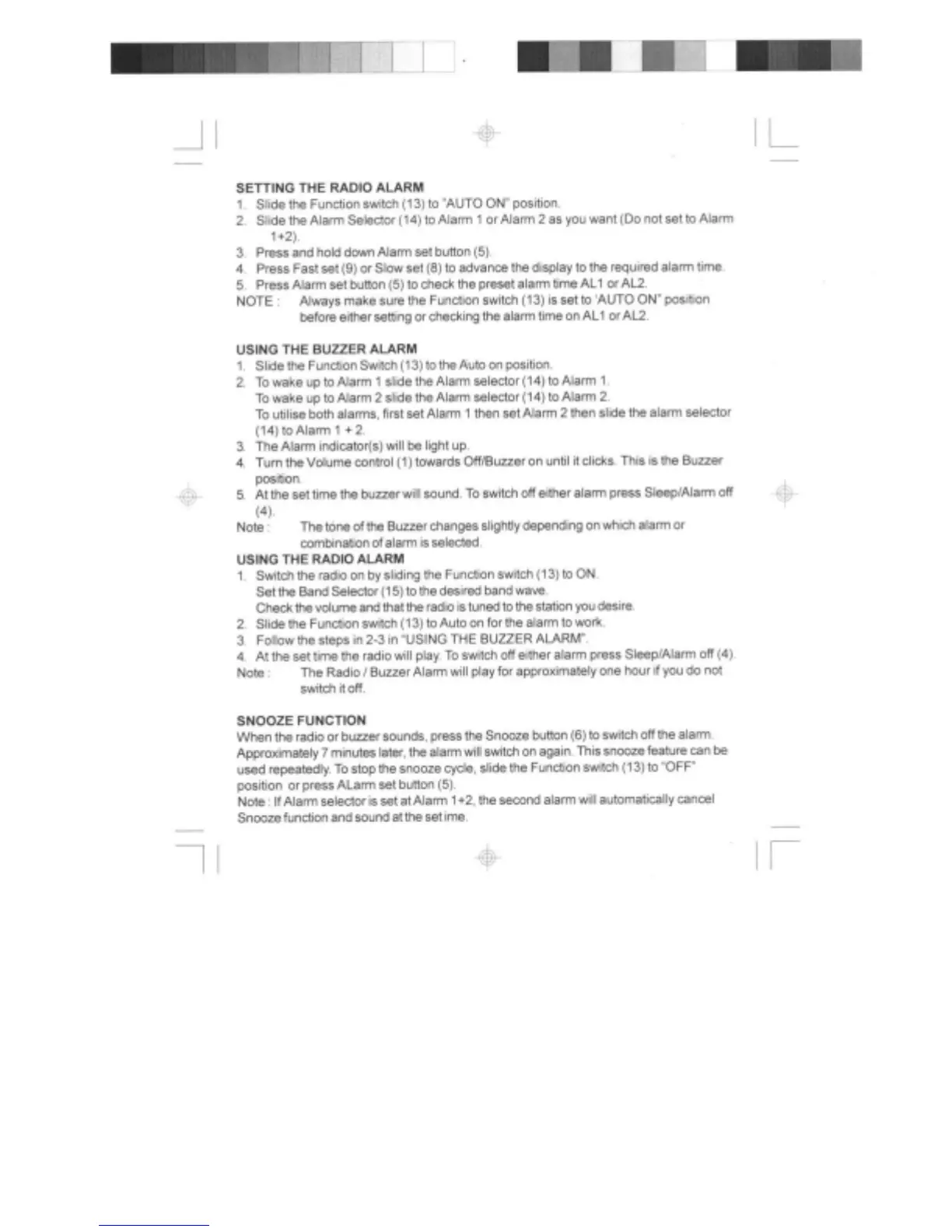 Hitachi KC35 - Alarm Functions; Setting Radio and Buzzer Alarms; Snooze Function