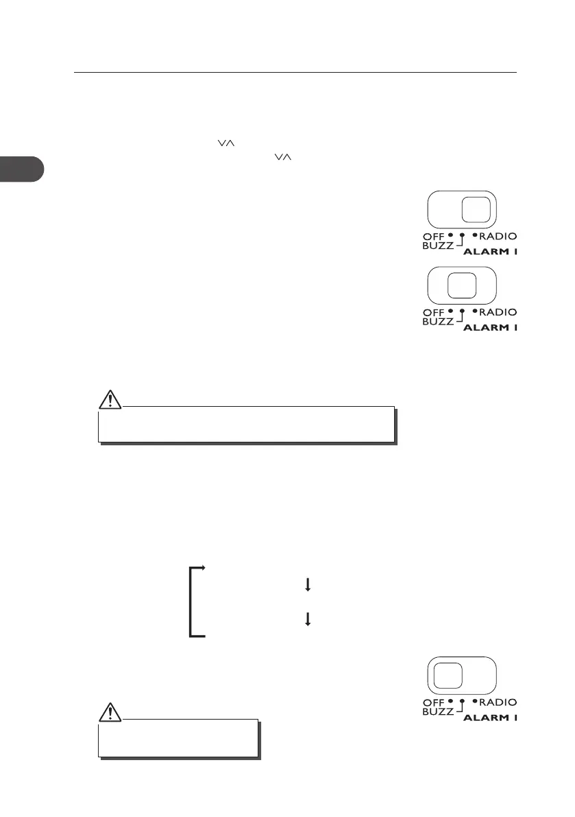 on the display. The alarm time will be conrmed when you release the button.