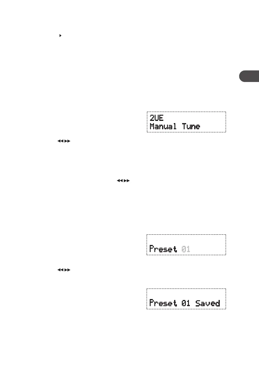 The display will show “Manual Tune”. Press the