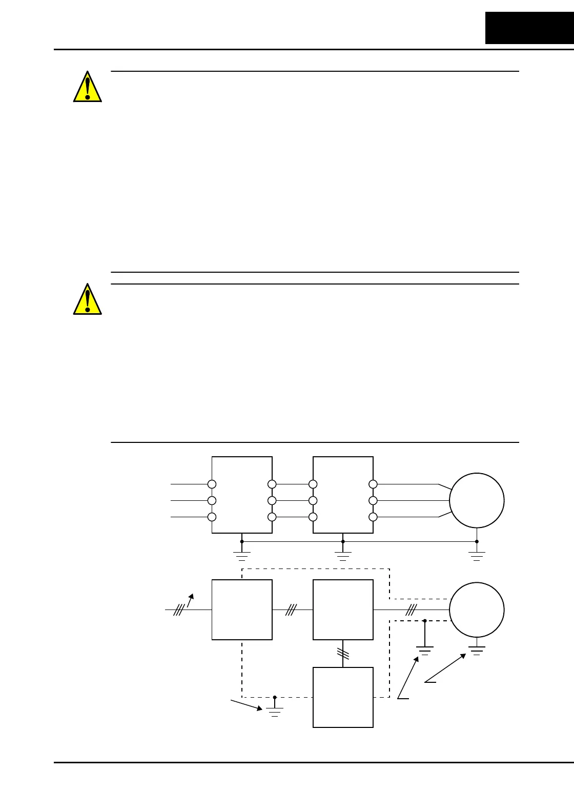 In the cases below involving a general-purpose inverter, a large peak current can flow on