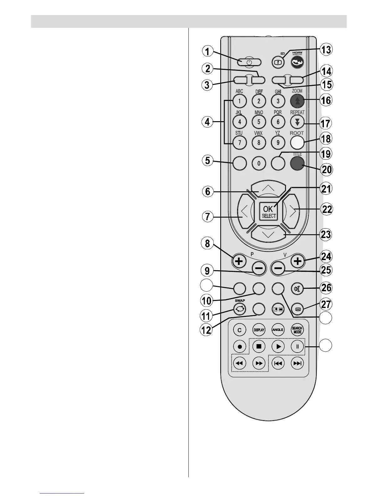 number on the remote control illustration are not
