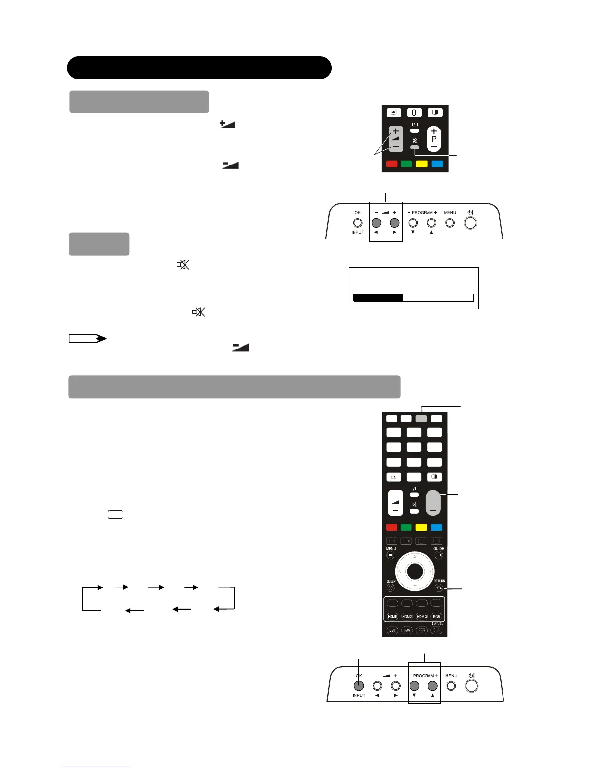 Input Switching to TV, AV1~4, HDMI, and RGB