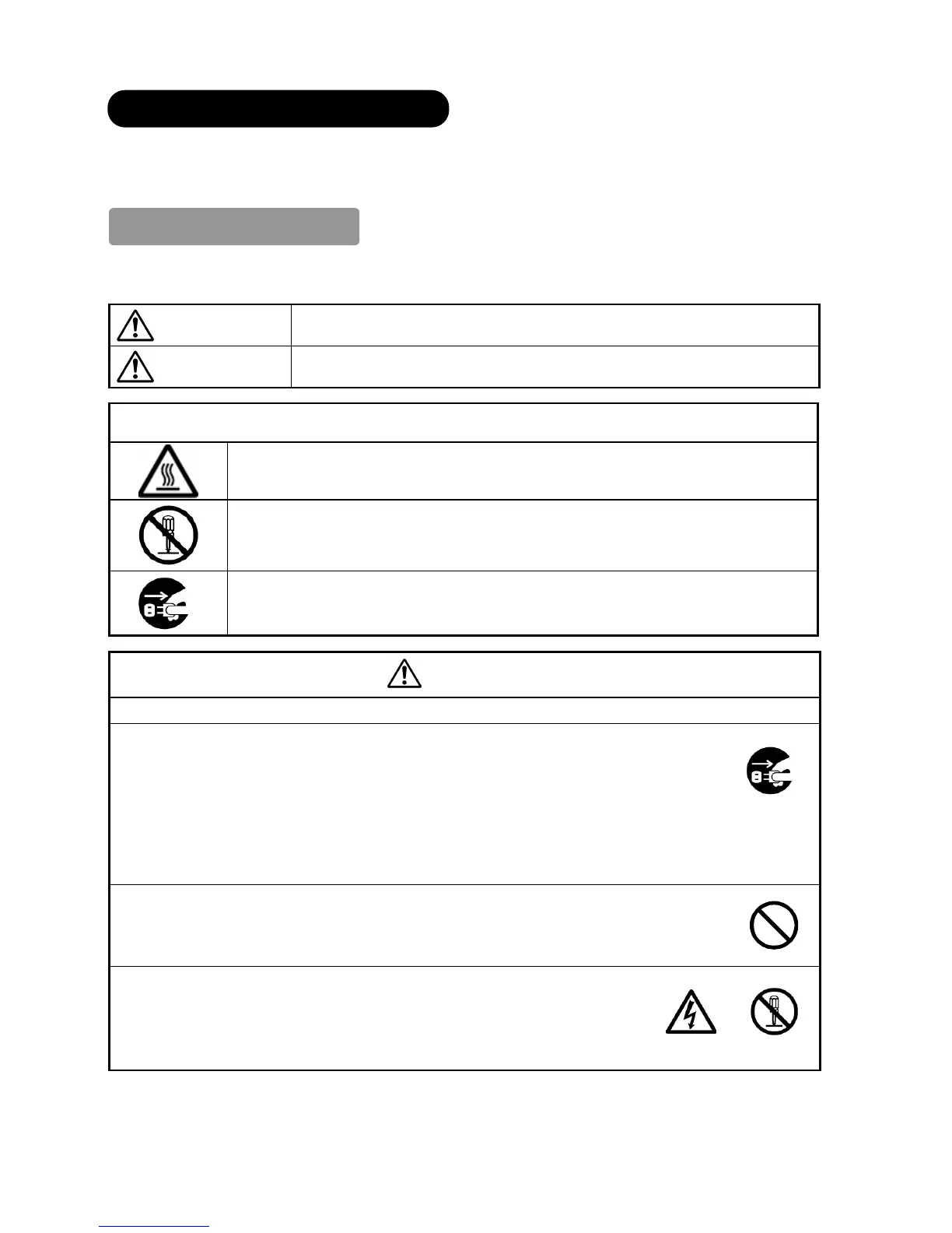 ● High-voltage components are installed inside of the unit. Removing covers can expose you to