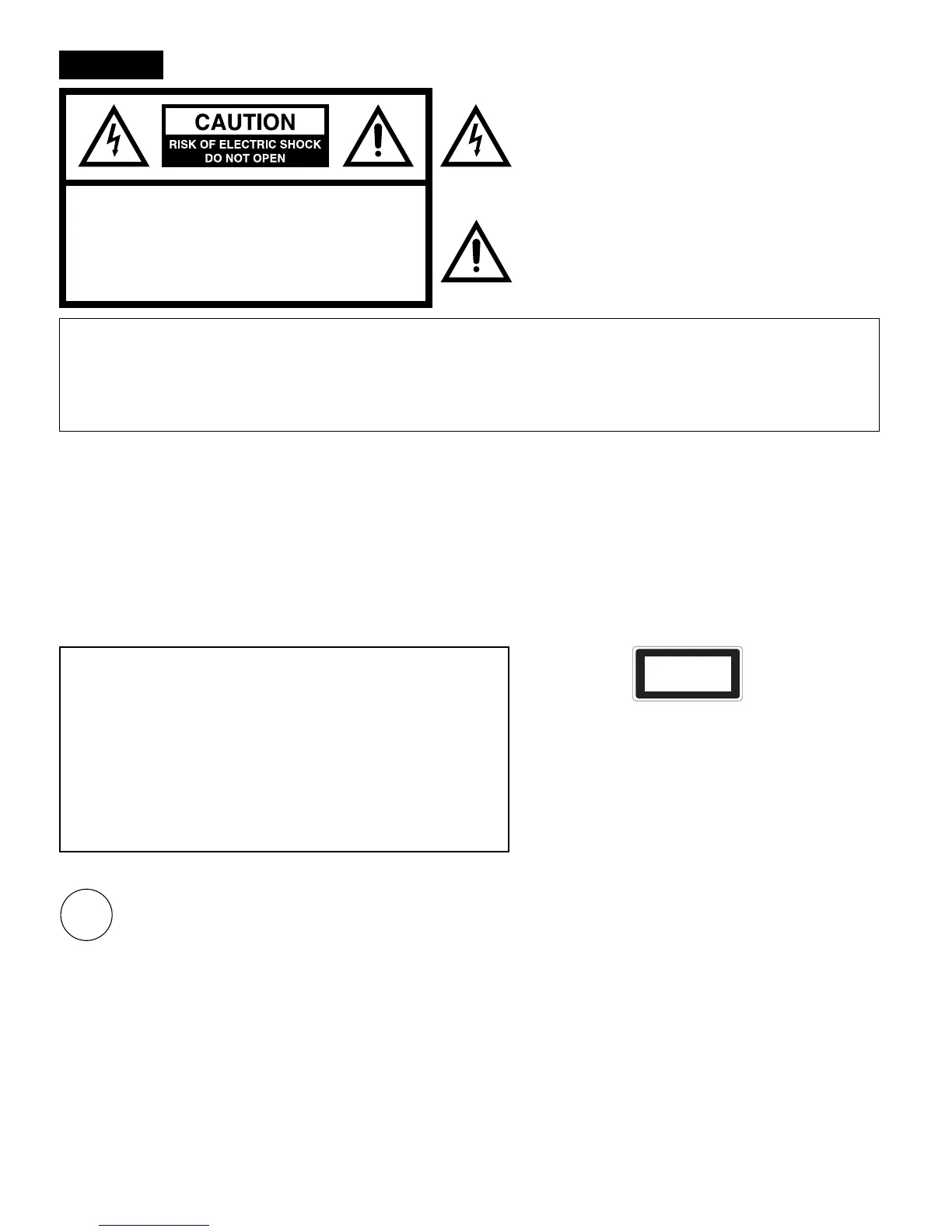 CAUTION: TO REDUCE THE RISK OF ELECTRIC