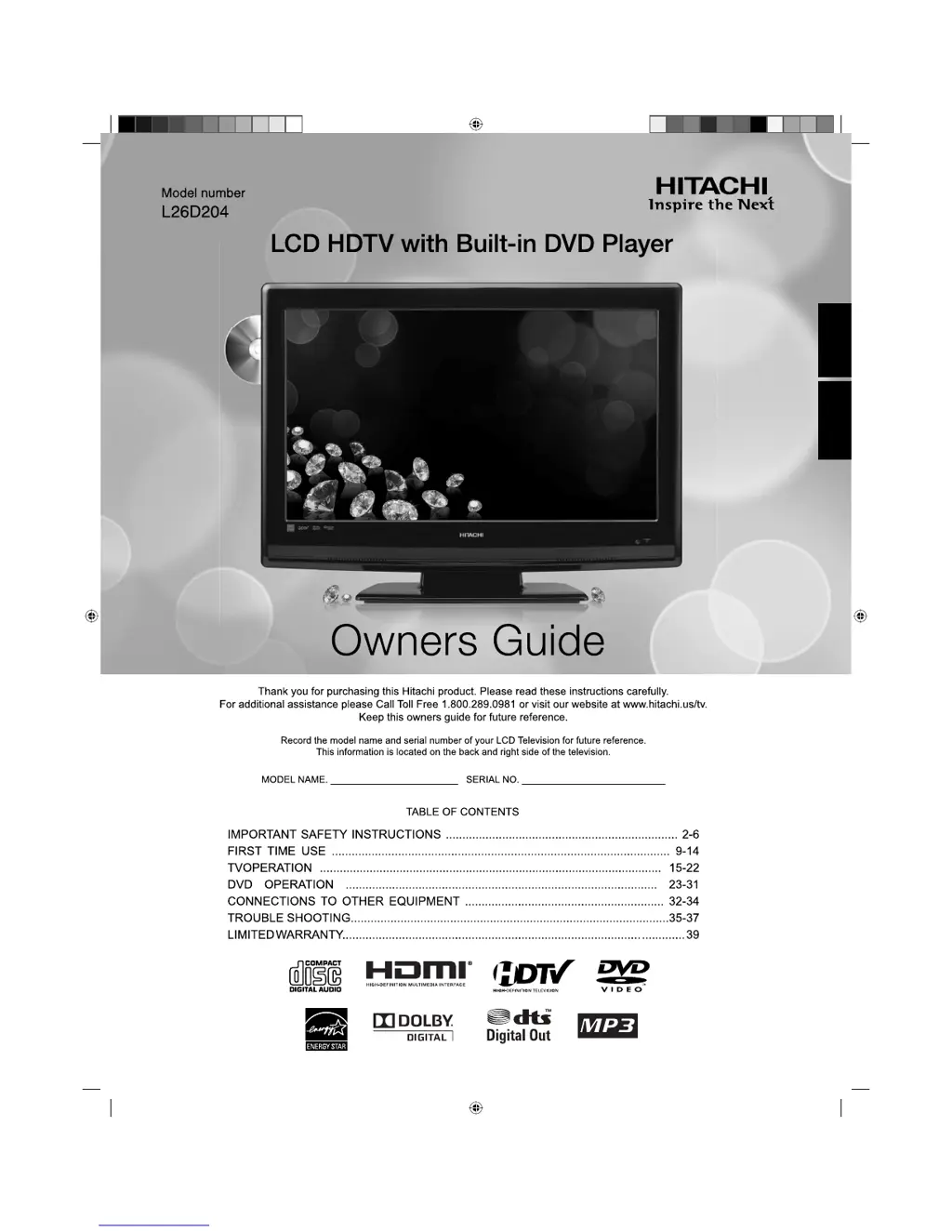 If your Hitachi LCD TV isn't turning on, ensure the power cord is securely plugged in. If it is, try unplugging the unit, waiting a few seconds, and then plugging it back in.