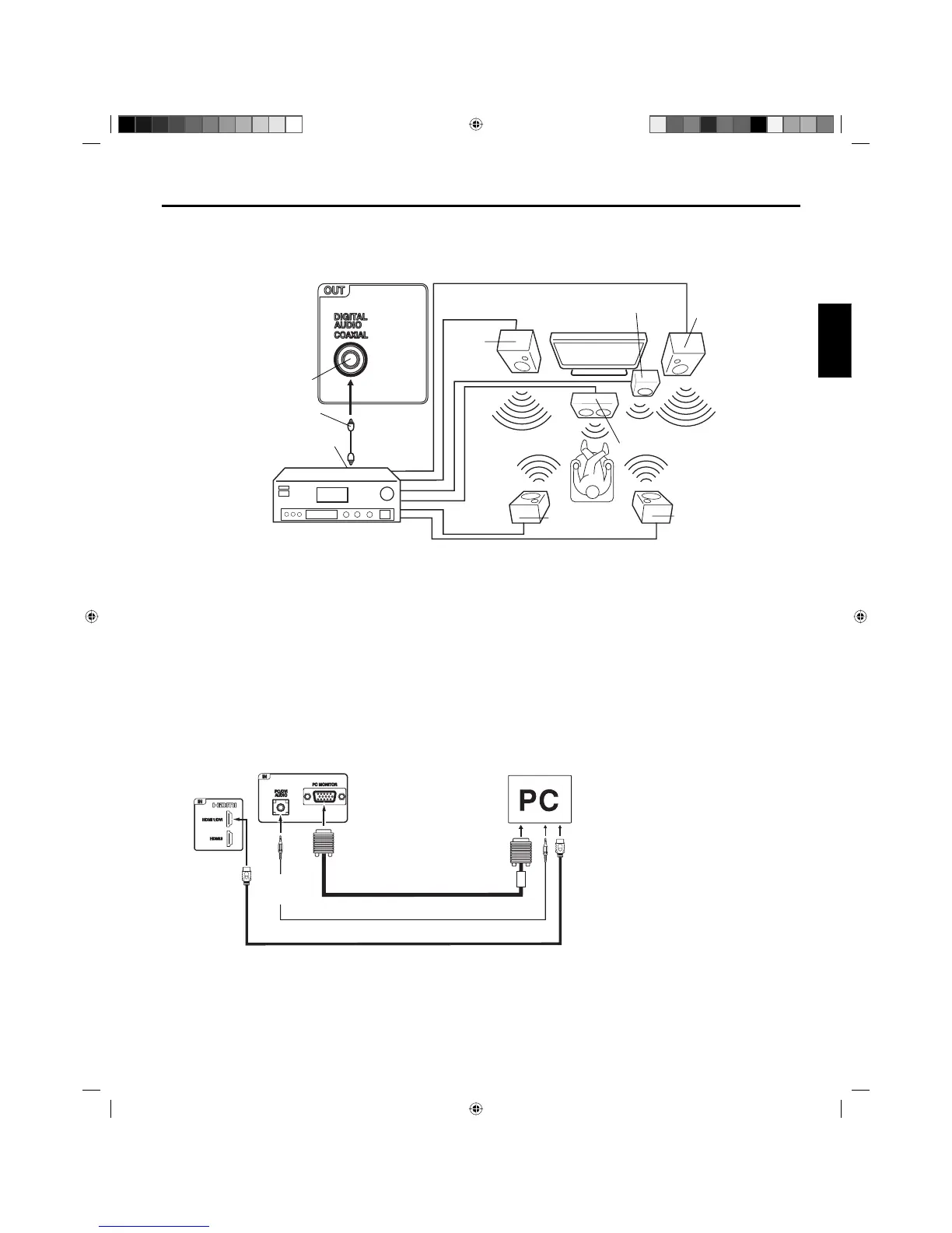 You can also connect the PC with HDMI cable. If you use HDMI cable, you don’t have to connect the audio cord. If you use DVI-to-HDMI