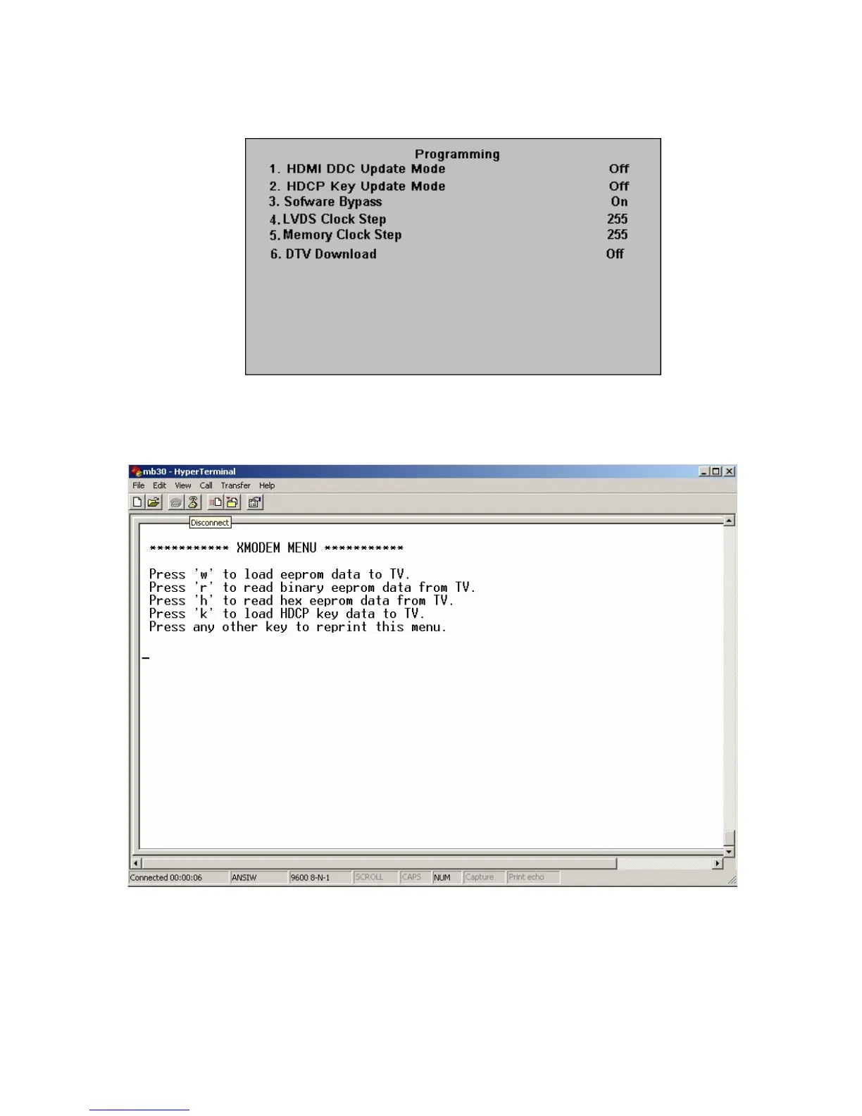 After then you must see Xmodem menu in the hyperterminal.To download hdcp key