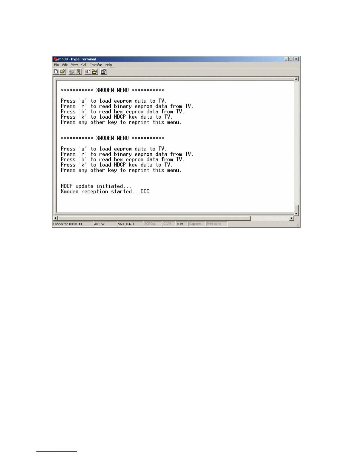 6) On Hyper Terminal Window press “k”