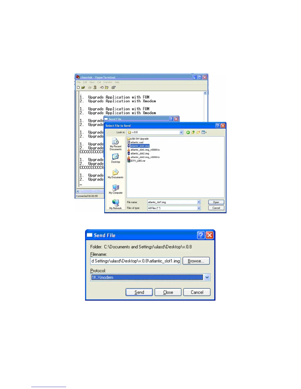 8. Choose the “1K Xmodem” from “Protocol” option.