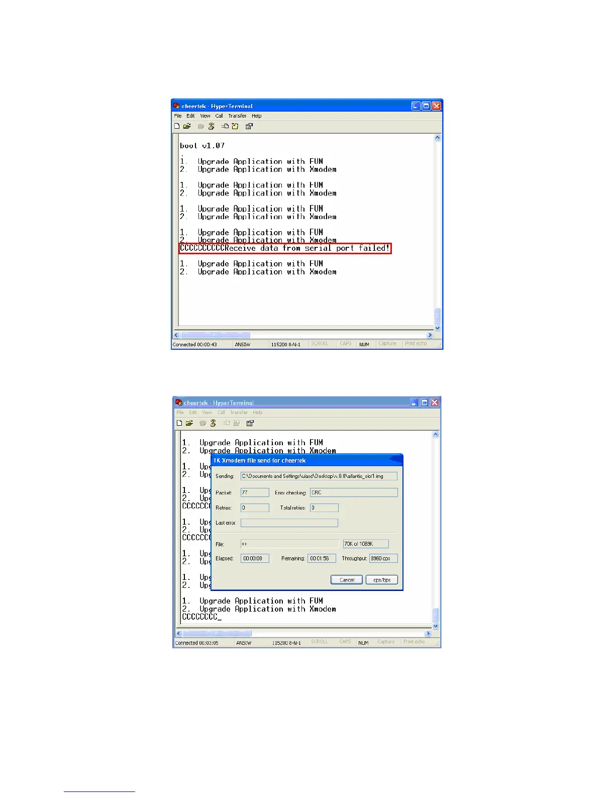 10. After the sending process the following HyperTerminal window must be seen.