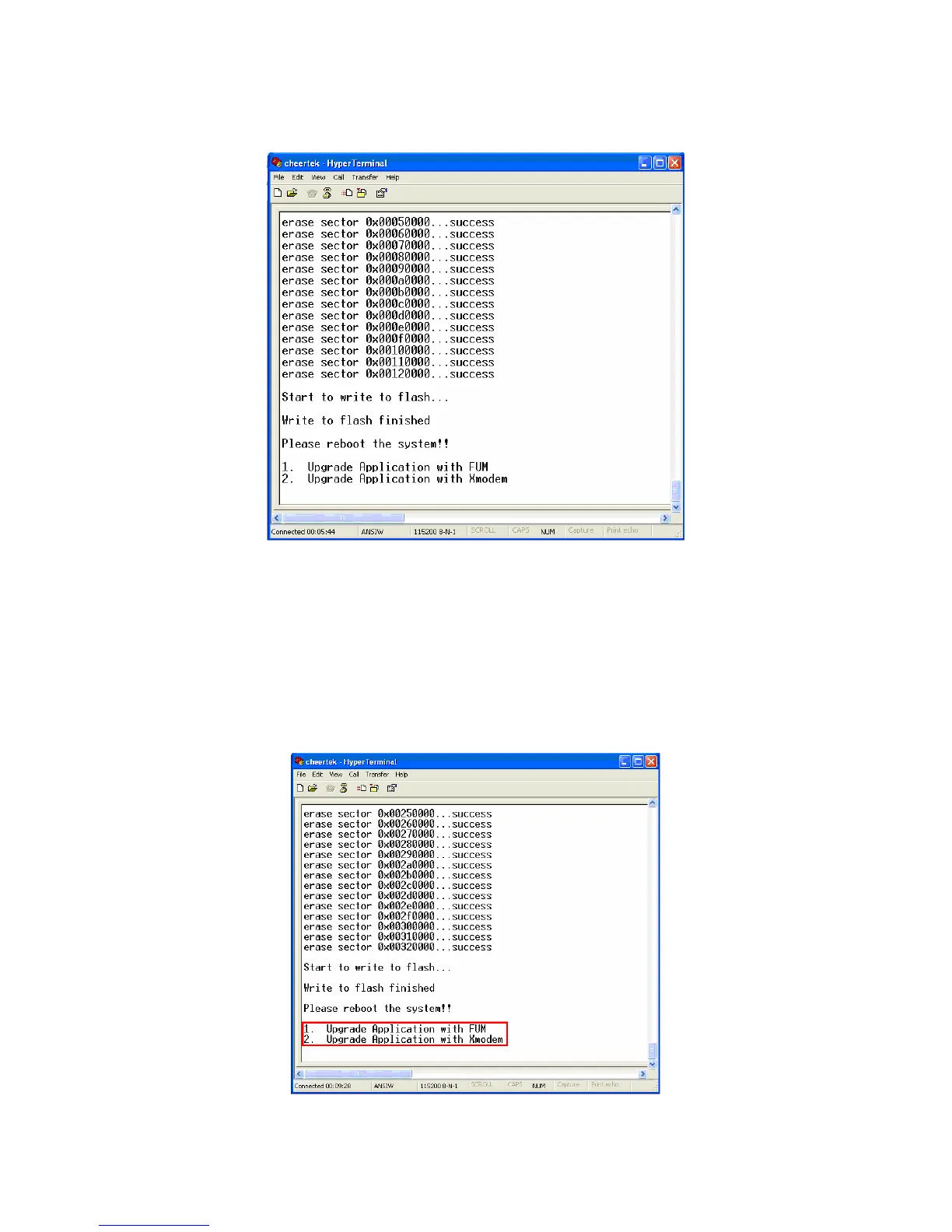 2. Upgrade Application with Xmodem, options must be seen.