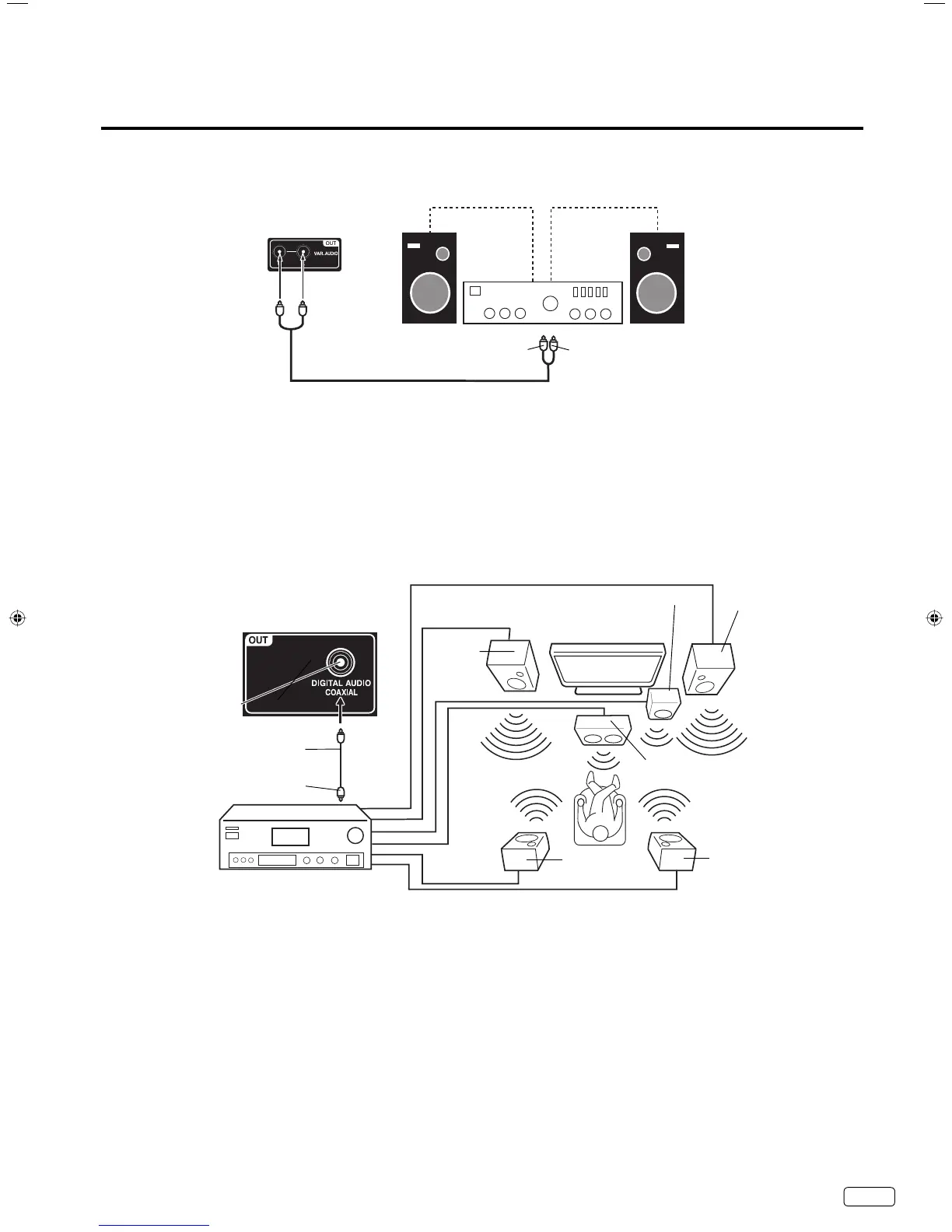 TV. Para controlar el audio, encienda el TV y el amplificador de estéreo, y desconecte los altavoces incorporados del TV (ver página 15).