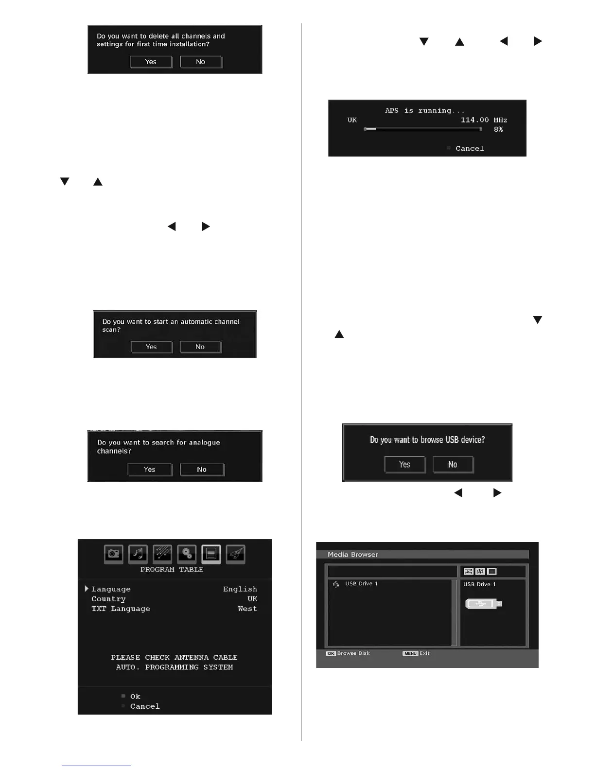 screen for analogue channel search: