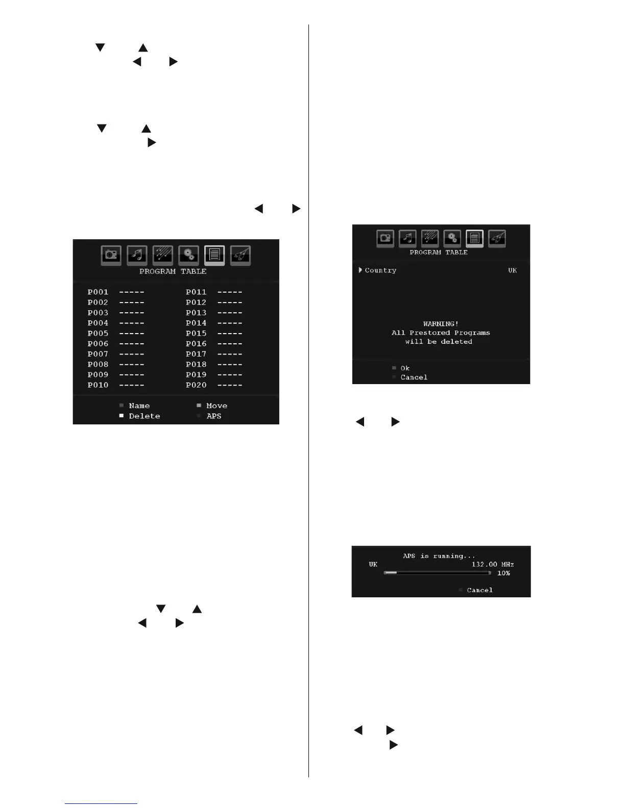 Select Program Table by pressing “ ” or “