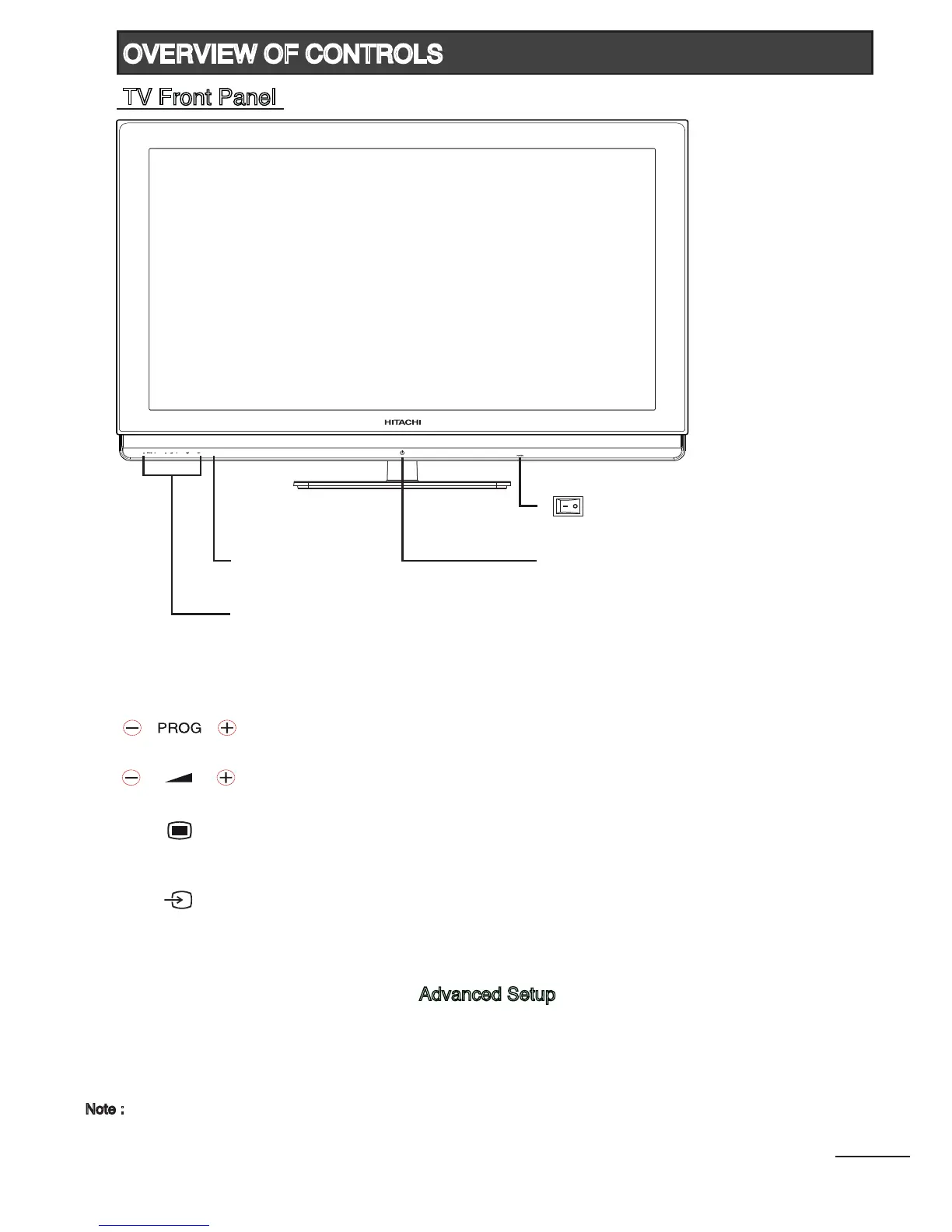 : Main power switch to switch the TV On and Off.
