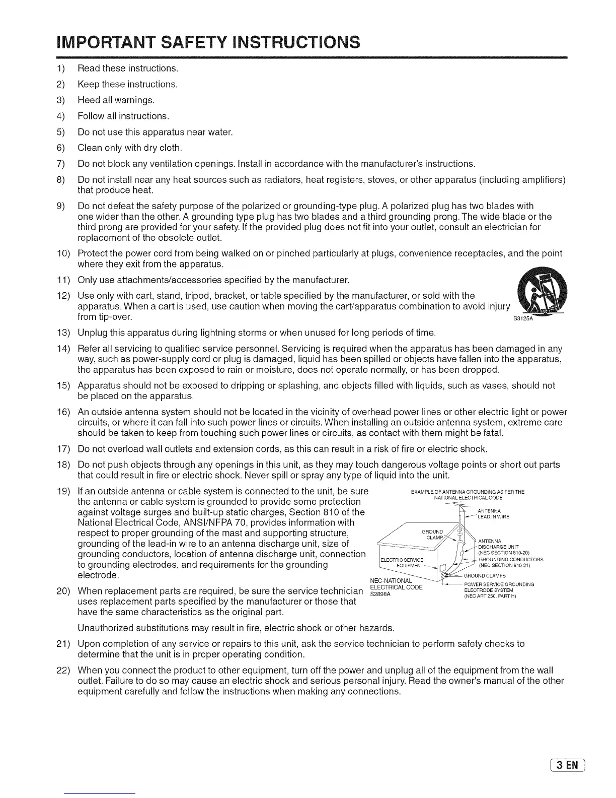 Use only with cart, stand, tripod, bracket, or table specified by the manufacturer, or sold with the