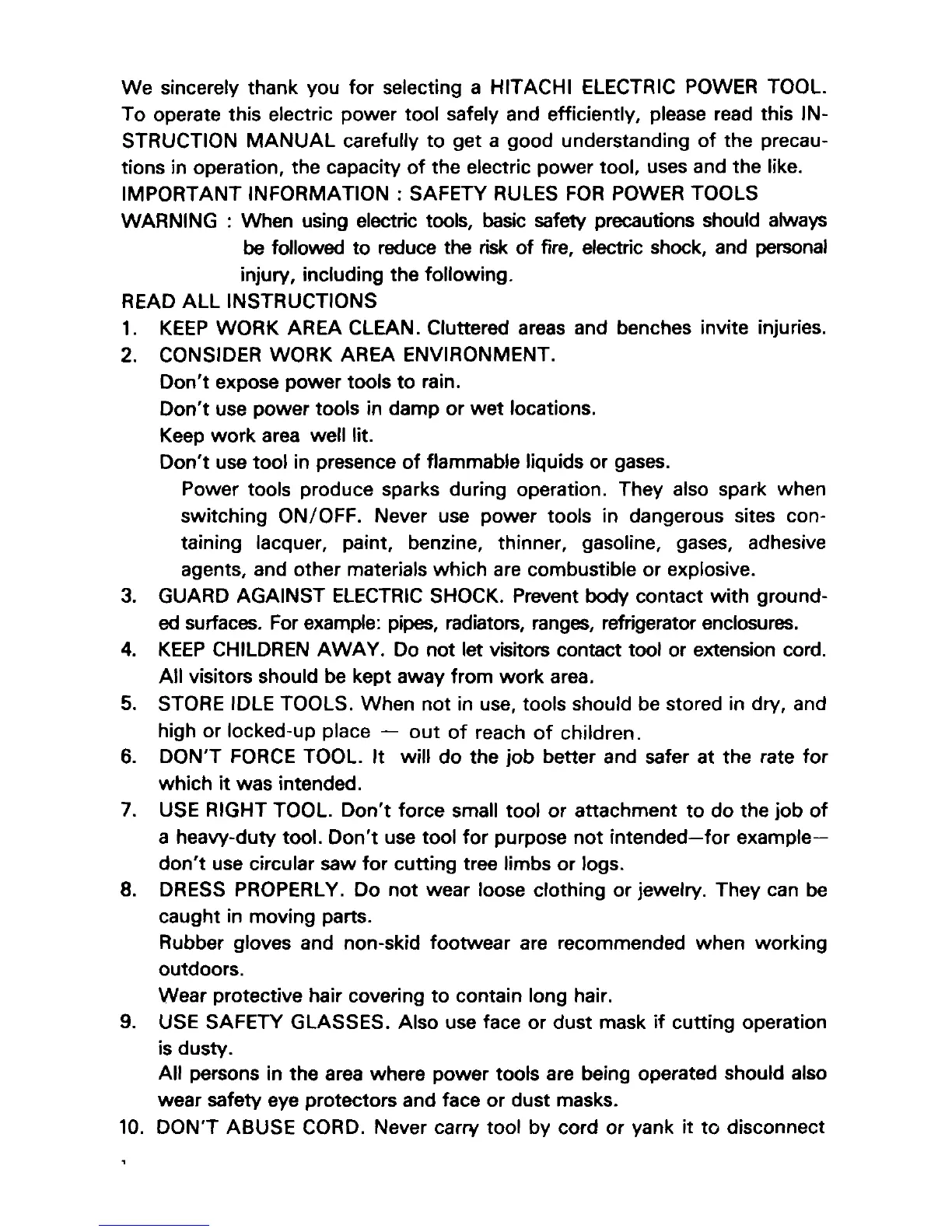 Hitachi M12V - Safety Rules for Power Tools; General Safety Precautions
