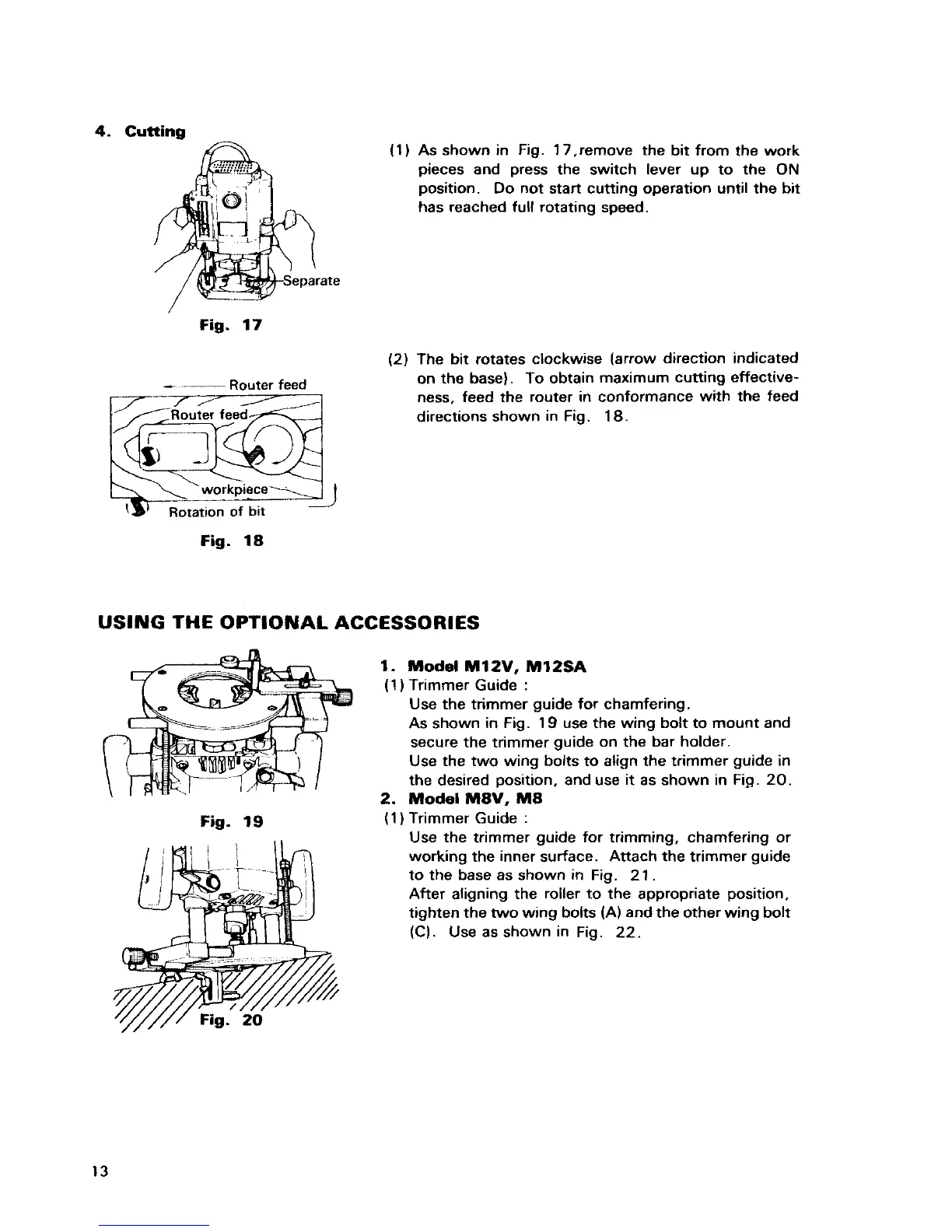 Hitachi M8V - Cutting; Using the Optional Accessories; Trimmer Guide (M12 V, M12 SA); Trimmer Guide (M8 V, M8)