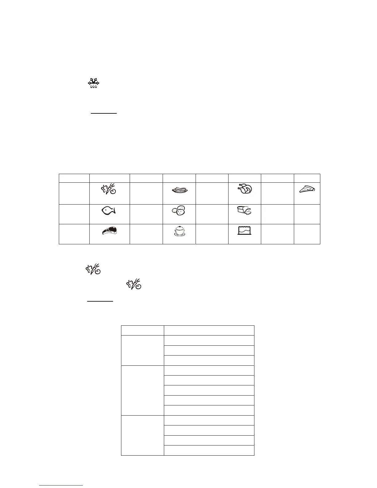 For the food in the following table, it is not necessary to program the cooking
