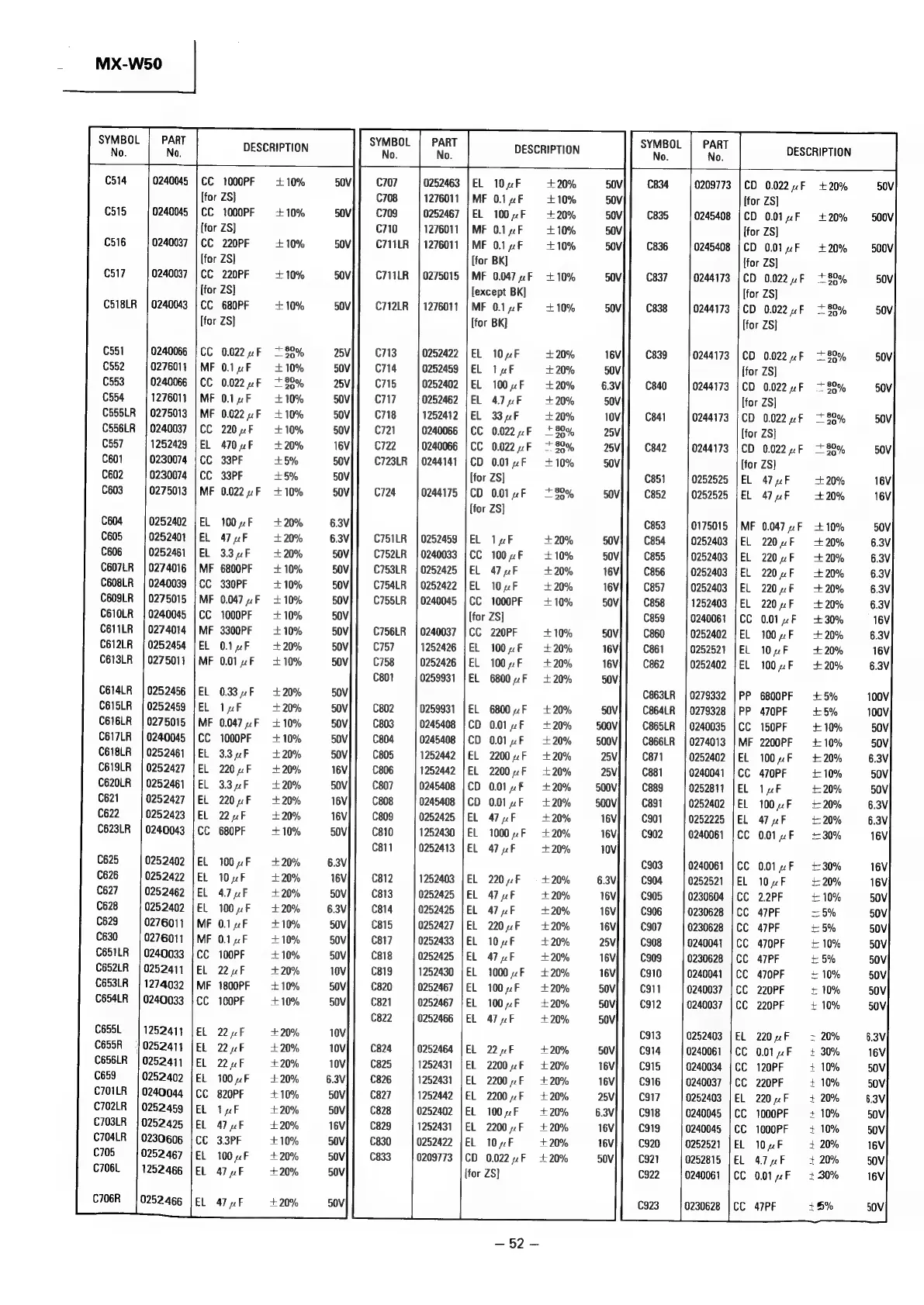 Hitachi MX-W50 - Diodes; Transistors; Variable Resistors; Coils & Transformers
