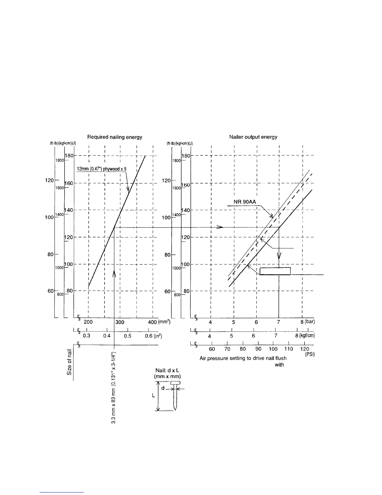 energy required for driving the nail flush. Air pressure which exceeds the intersecting point between the nailer