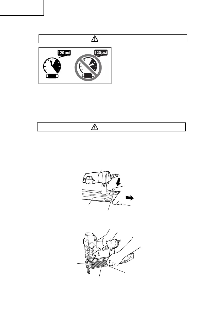 higher than required air pressure unnecessarily over stresses the Nailer.