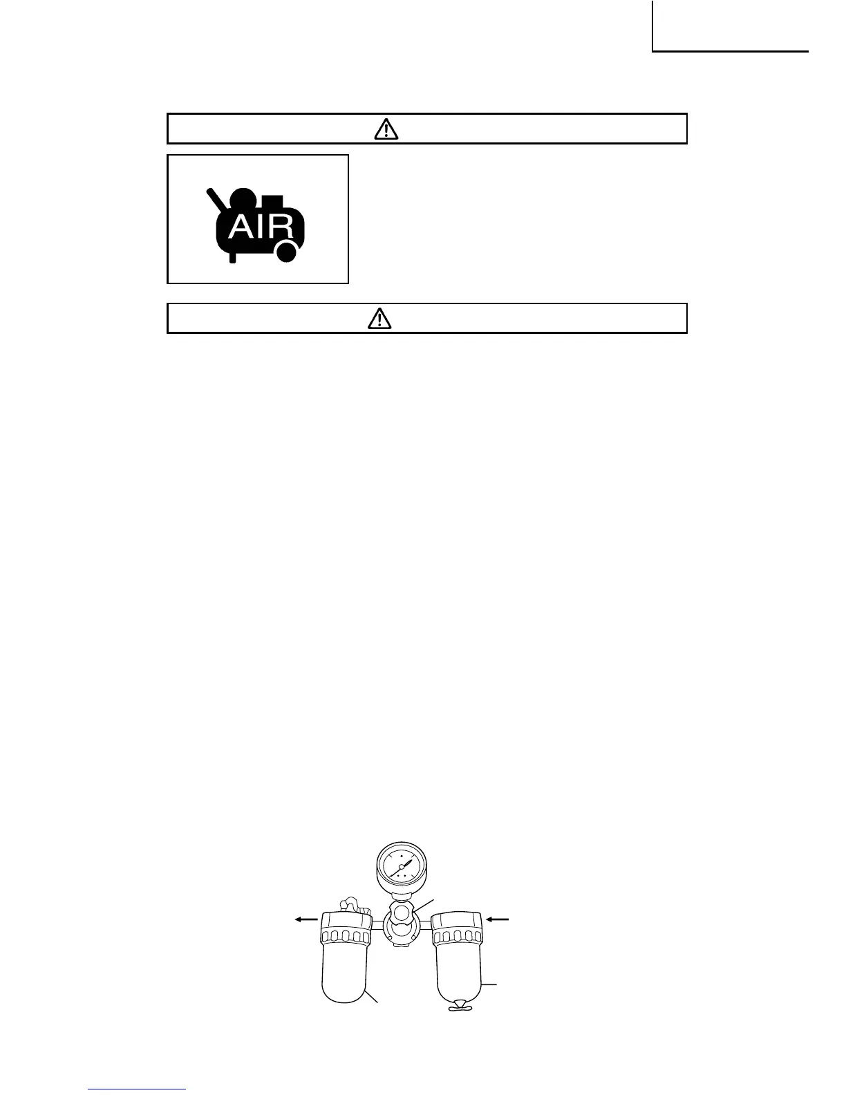 䡬 Use a regulator with a pressure range of 0 – 120 psi (0 – 8.3 bar, 0 – 8.5 kgf/cm
