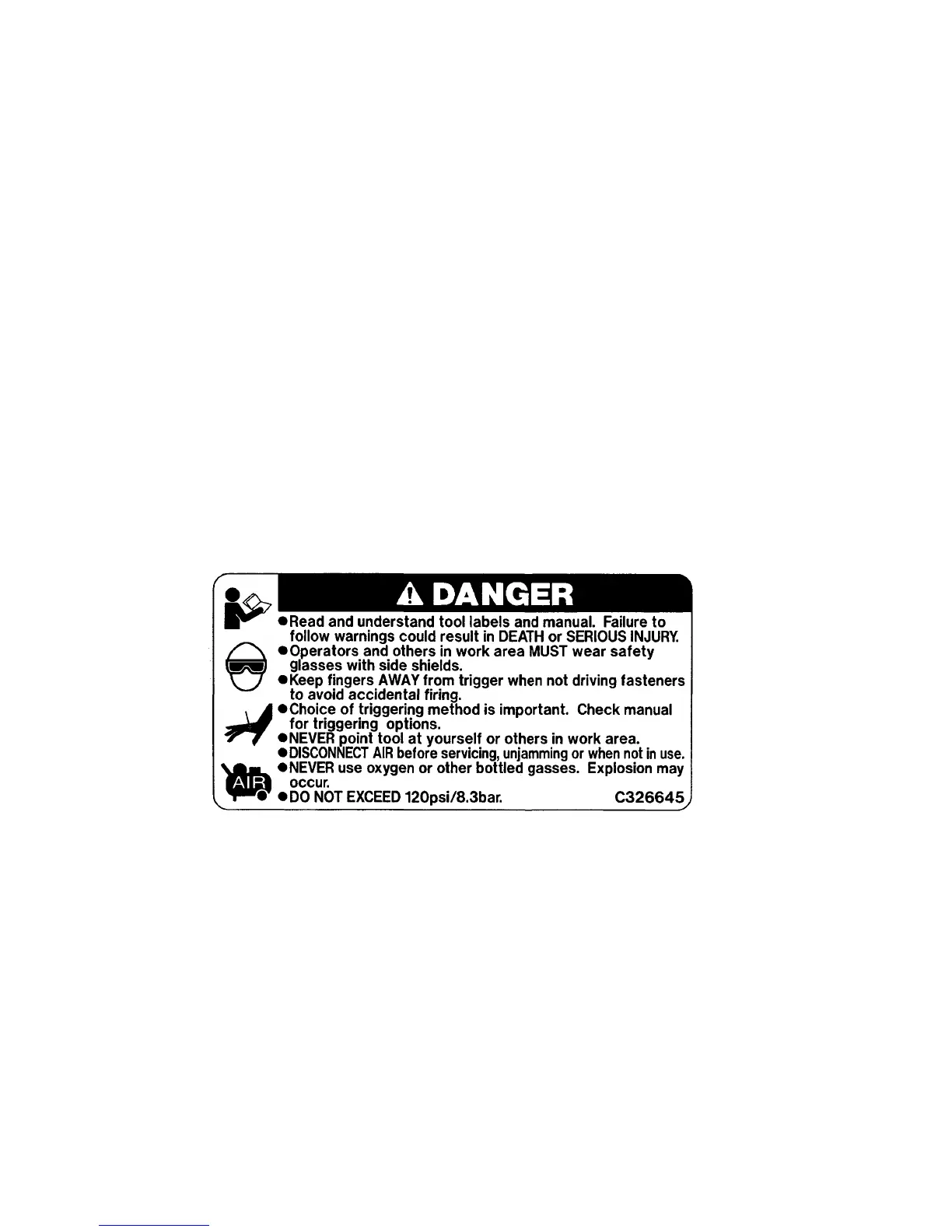 listed on the Warning Label attached to each tool.