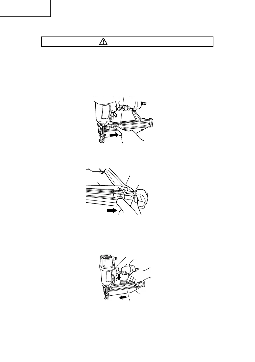 (2) Tire del alimentador de clavos hasta que la parte cóncava de la tapa del depósito haga