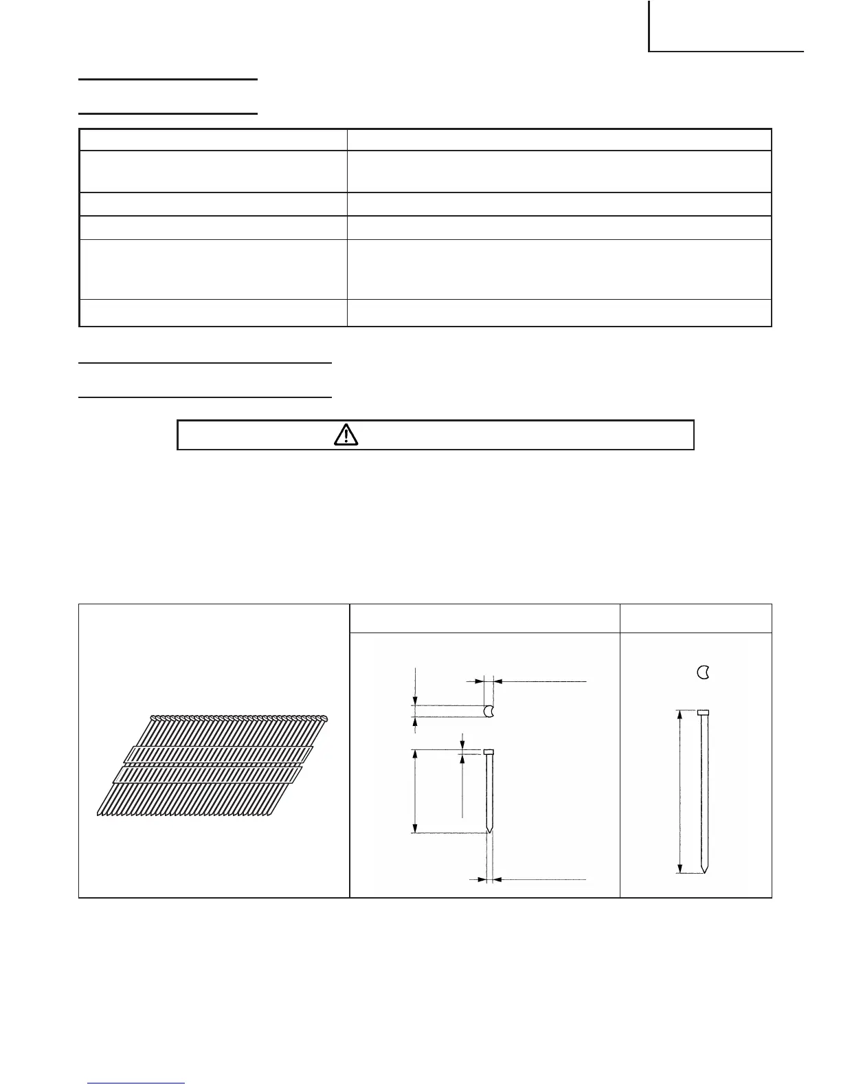Seuls les clous indiqués dans le tableau ci-dessous pourront être utilisés avec ce cloueur.