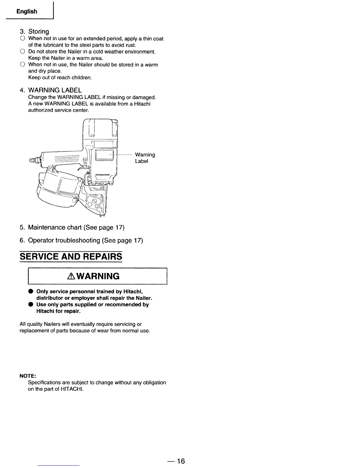 Other manuals for Hitachi NV 83A