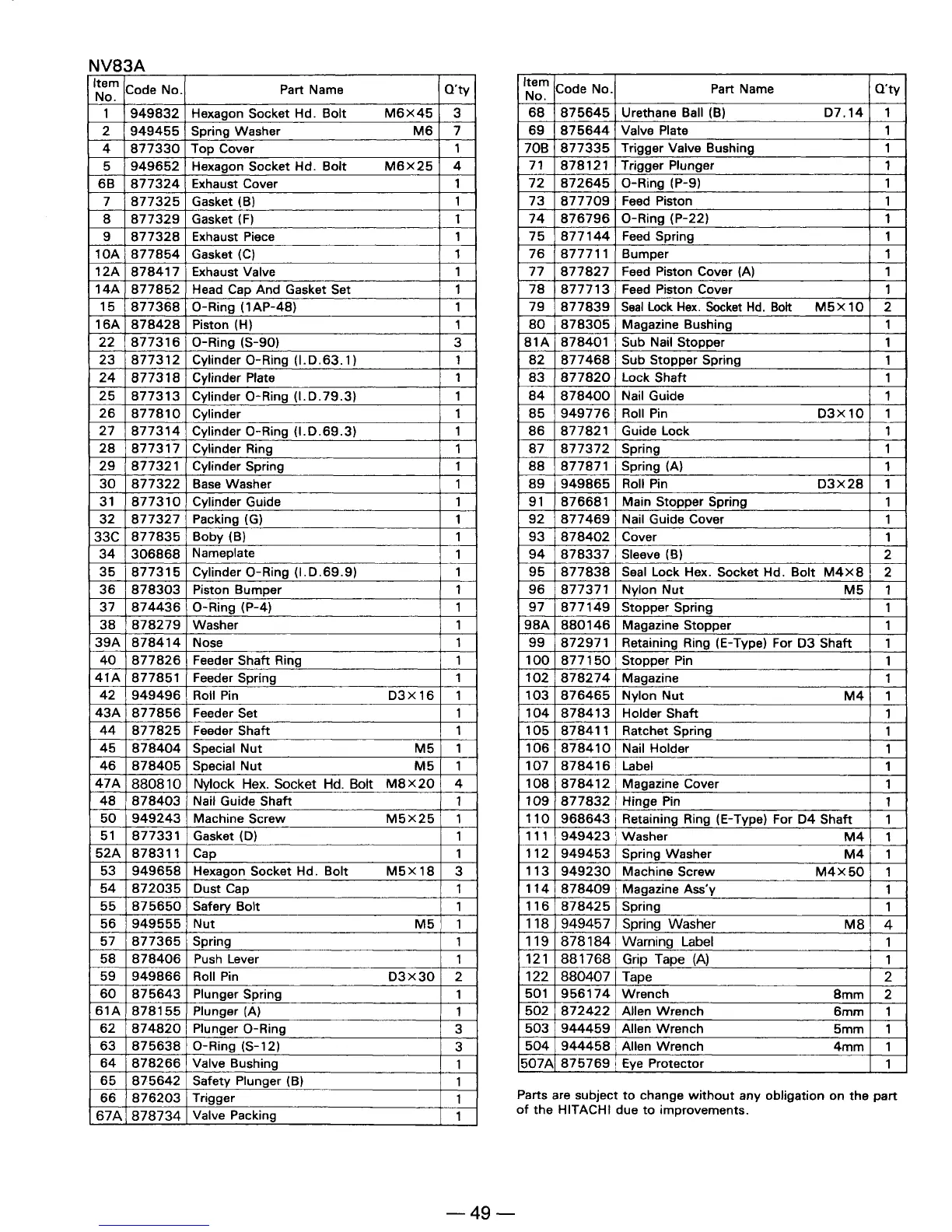 Other manuals for Hitachi NV 83A