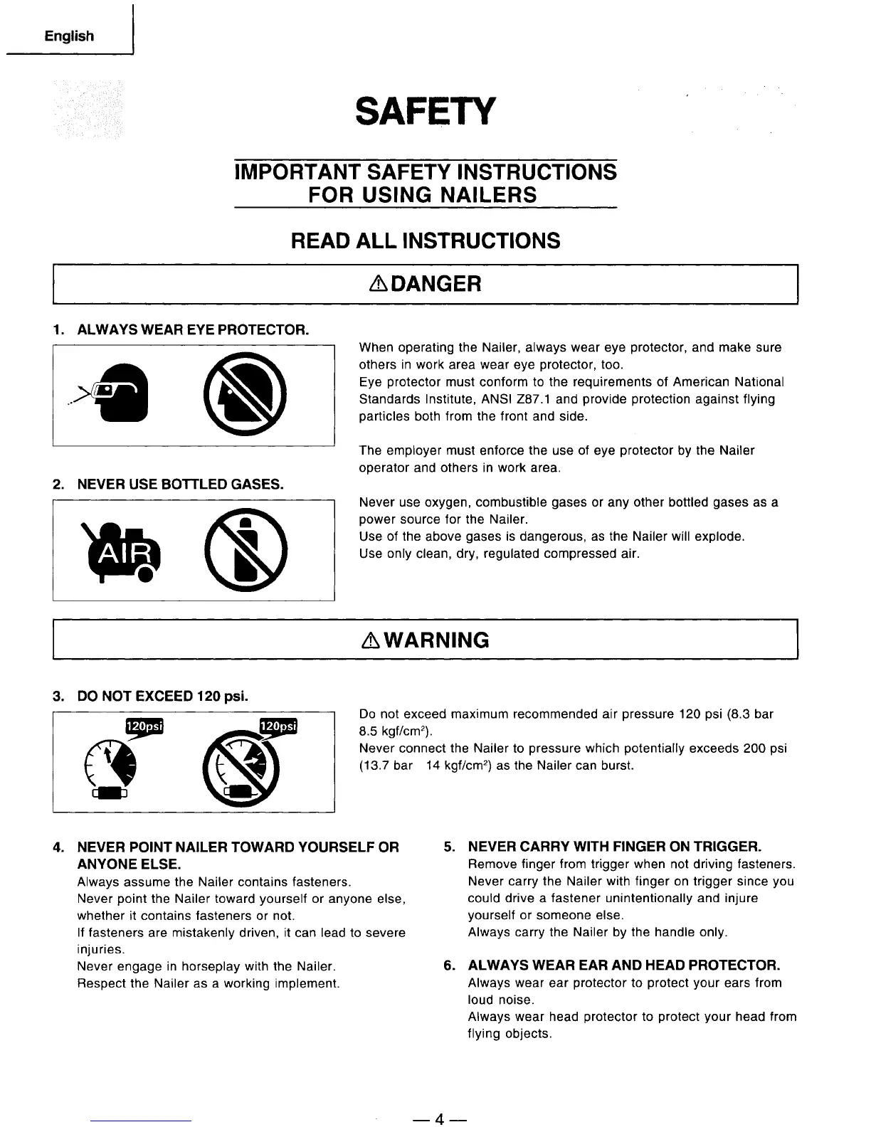 Hitachi NV 83A - SAFETY; IMPORTANT SAFETY INSTRUCTIONS FOR USING NAILERS